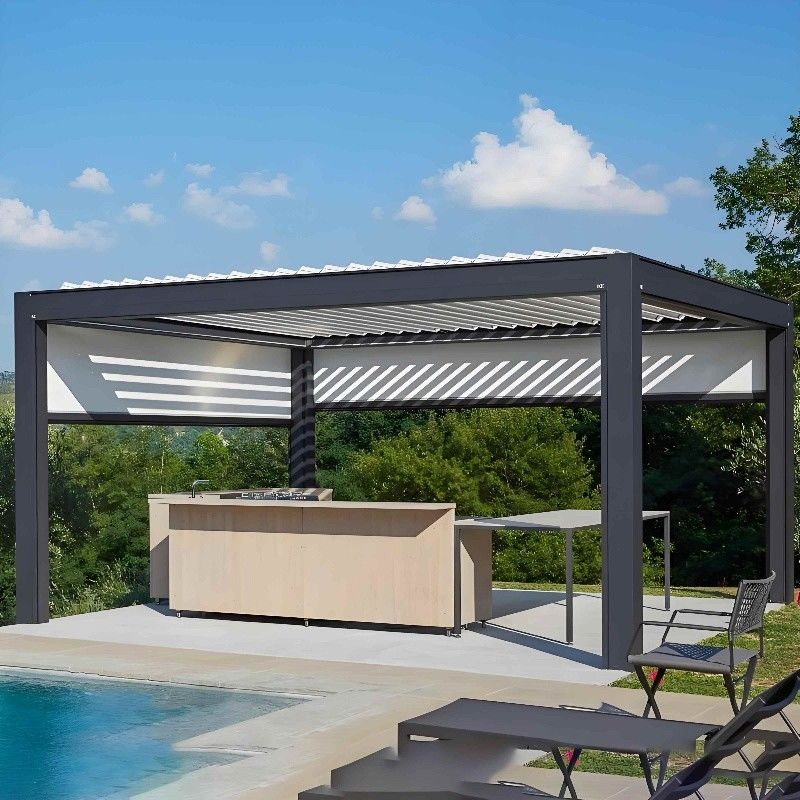 Para aqueles que desejam controle sobre sua experiência ao ar livre—escolhendo quando se bronzear ao sol ou desfrutar de uma brisa fresca—o gazebo com venezianas de alumínio oferece exatamente isso. Ao contrário de estruturas com telhado fixo ou soluções básicas de sombra, ele apresenta venezianas de alumínio ajustáveis em seu núcleo, combinadas com materiais duráveis e design cuidadoso, permitindo que você adapte cada momento ao ar livre às suas preferências.